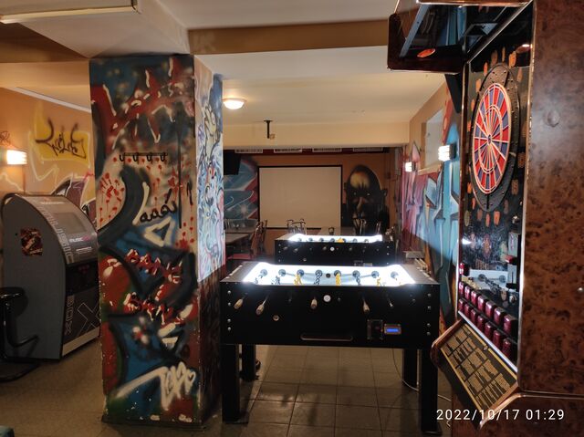 Bar se nachází v klidné pražské čtvrti Podolí. Je situován v kolejích ČVUT, bloku C, se samostatným vchodem z ulice Na lysině. V první místnosti se nachází bar, za kterým je druhá, větší místnost se stoly a přístroji k různým aktivitám, jako šipky, jukebox, fotbálky a televize. Počítejte s tím, že obsluha je pouze na baru.
